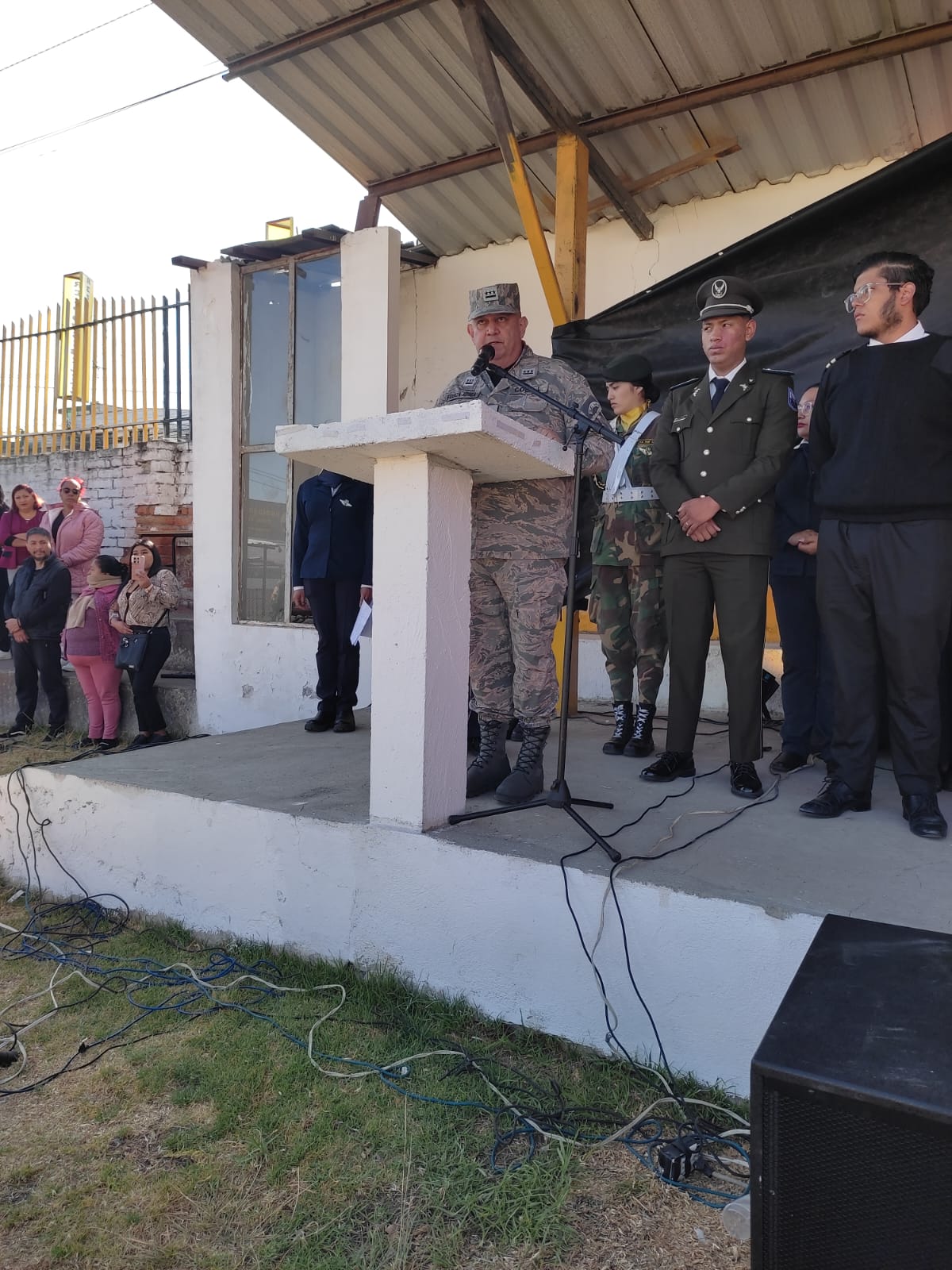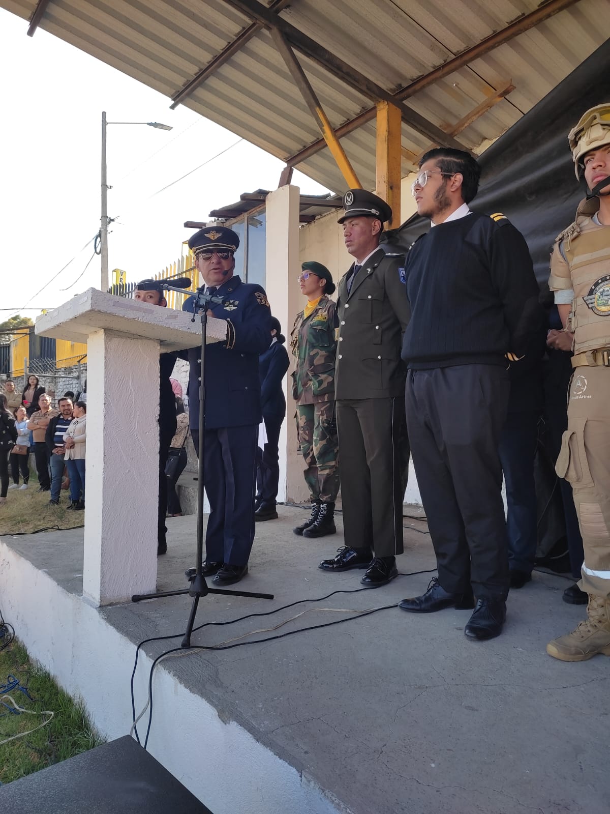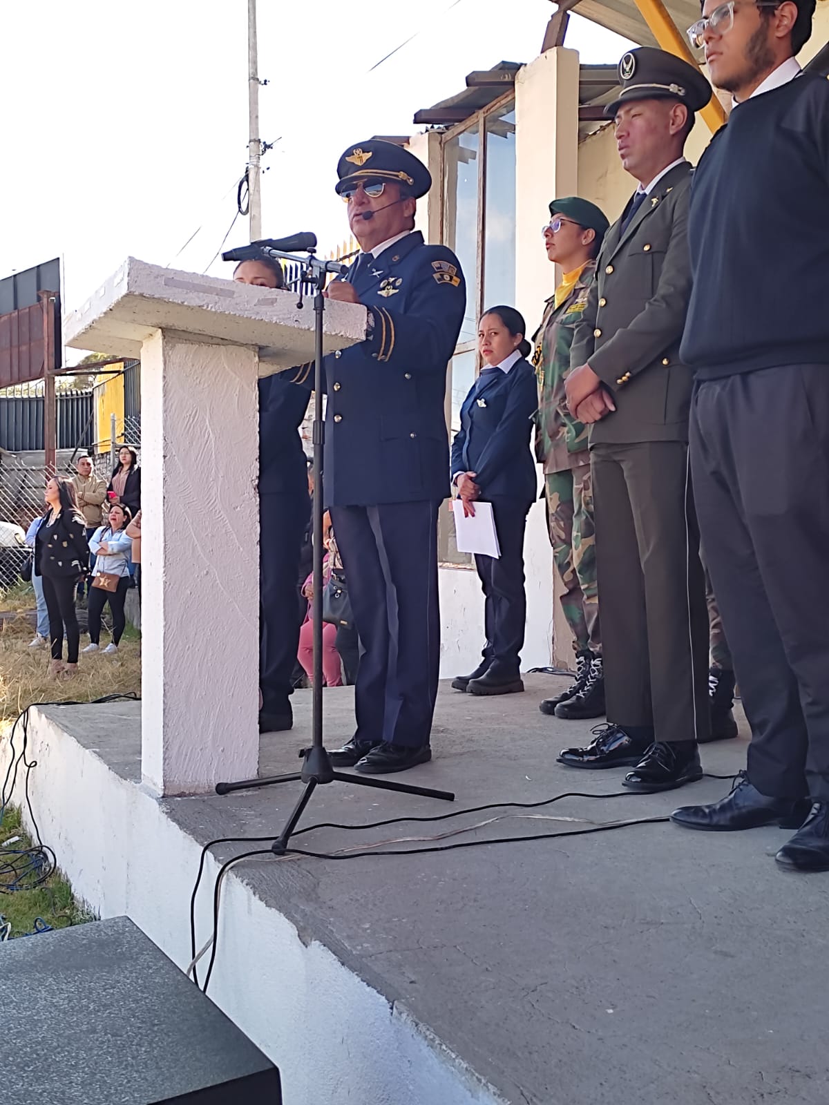 El evento cívico contó con la presencia de estudiantes, padres de familia, docentes, autoridades educativas y personal militar de la Fuerza Aérea Ecuatoriana.