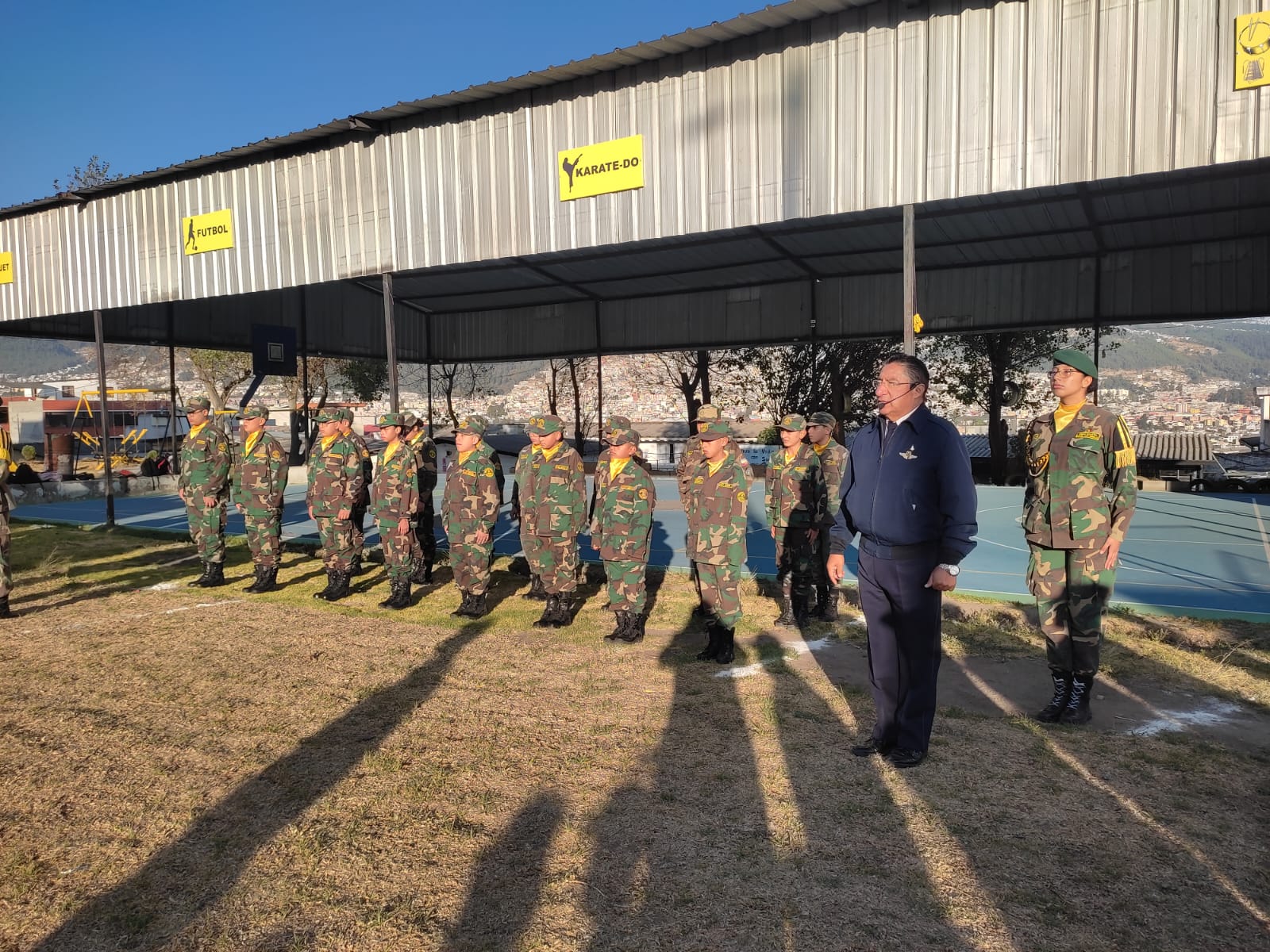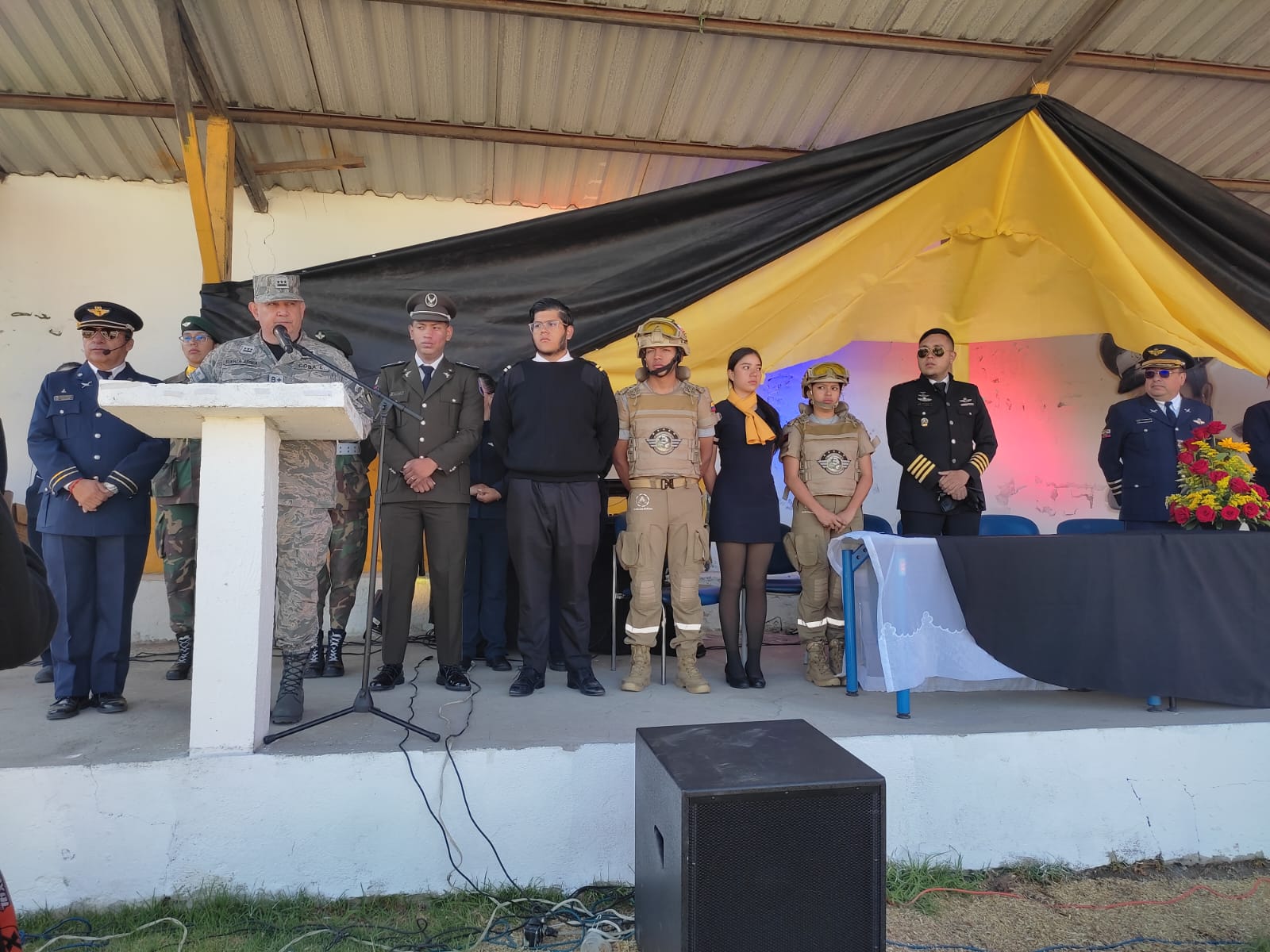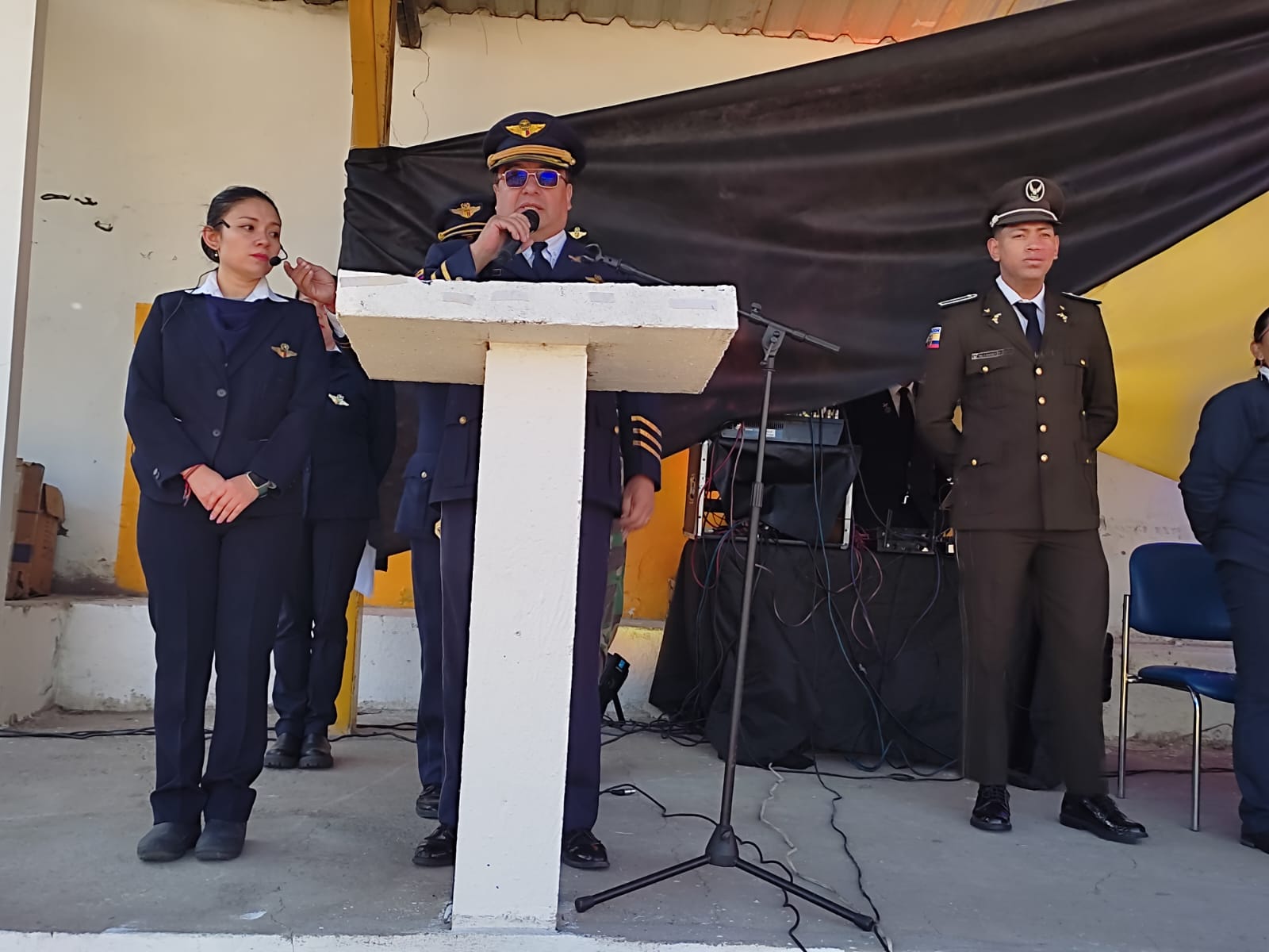 El evento cívico contó con la presencia de estudiantes, padres de familia, docentes, autoridades educativas y personal militar de la Fuerza Aérea Ecuatoriana.